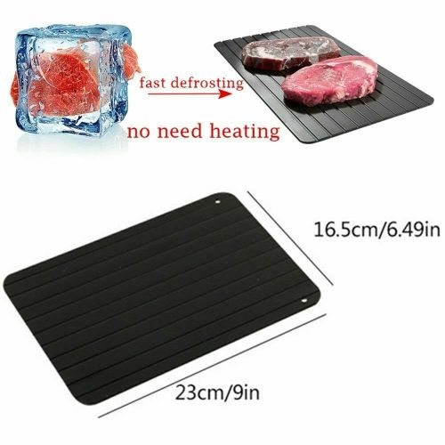 SUITABLE FOR MULTIPLE FOODS: The size of defrosting plate for meat is:23*16.5cm. The large and flat surface enables you to thaw multiple items together; such as small food like breast or bacon or chicken or fish or burger patties or vegetables or broccoli; large pieces of meats or steak!