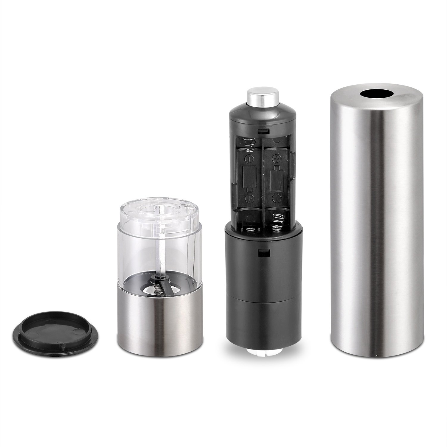 **PREMIUM QUALITY MATERIALS*:Electric salt and pepper grinders are made of the highest quality stainless steel and BPA-free acrylic glass and have a rustproof ceramic core to ensure smooth and easy grinding.