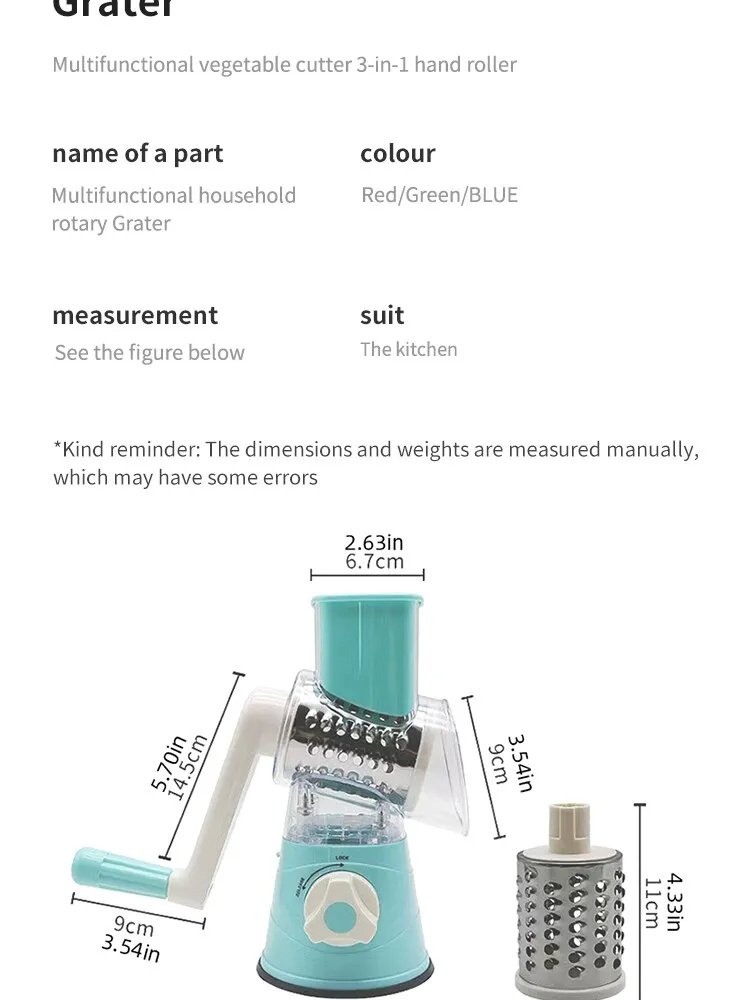 Multifunctional Roller Vegetable Cutter Hand Crank Home Kitchen Shredder Potato Grater