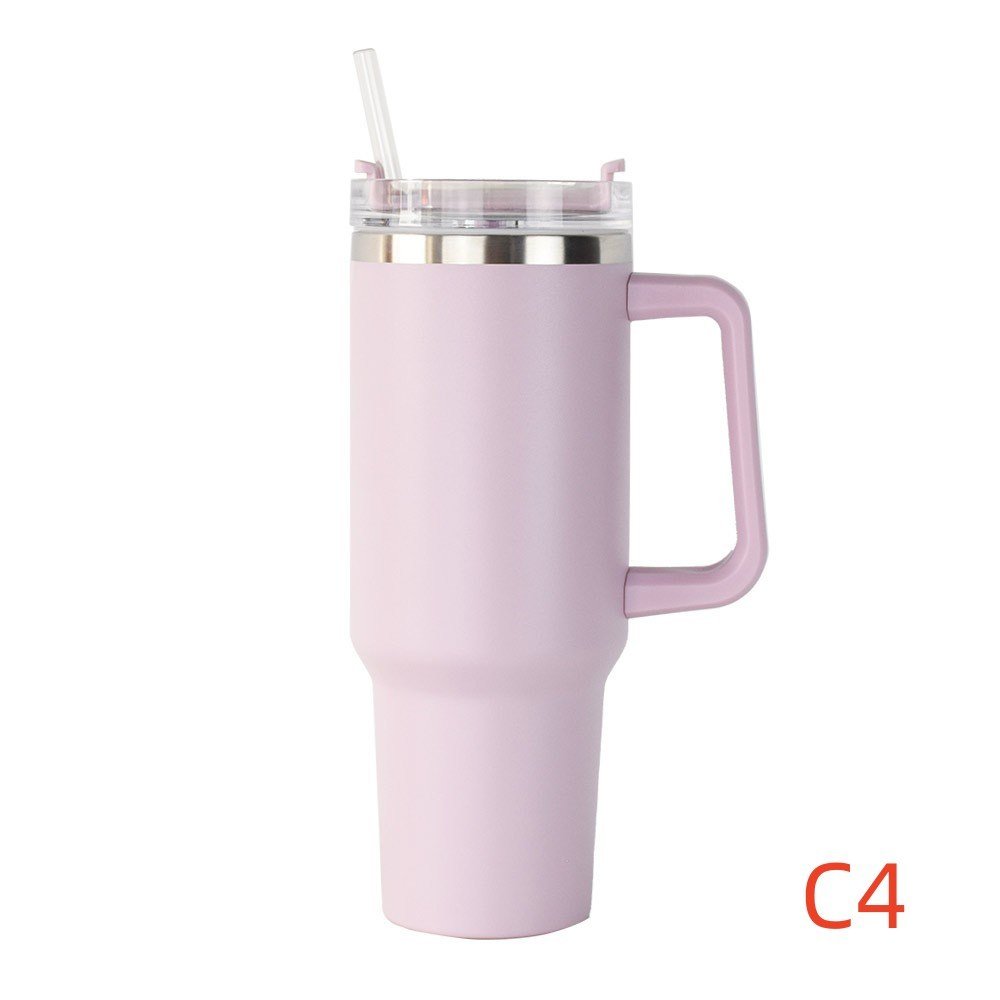 40oz High-end High Capacity Car Travel Kettle Double Insulated Thermos Cup Lid and Straw Stainless Steel Coffee Sippy Cup! New Large Capacity 40oz Mug Portable Handle Vacuum Stainless Steel Beer Mug Double Layer Car Coffee Mug Travel Water Mug When it comes to hitting your daily hydration goals; go big with our 40oz Quencher Travel Tumbler. Studio workouts; long commutes; weekend getaways—this one is a game changer. Double-wall vacuum insulation will keep water cold for hours and hours; no need for constant refills. The lid features a rotating cover with three positions: an opening for the reusable straw; an opening for sipping; and a full-cover top to prevent splashes. Complete with a comfortable; ergonomic handle for carrying. Generously sized and beautifully styled; make this one your everyday hydration accessory.