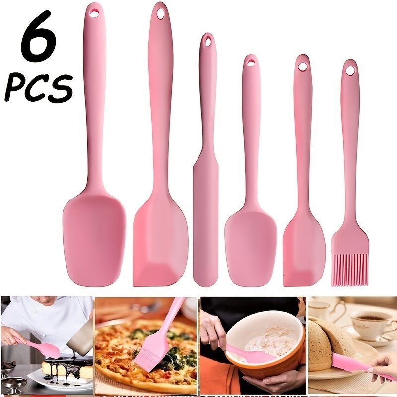 6pcs Silicone Kitchenware Set; Kitchen Supplies; Baking Supplies; Large Scraper; Spatula; Baking Tools; Cake Cream Spatula; Kitchen Tool Set