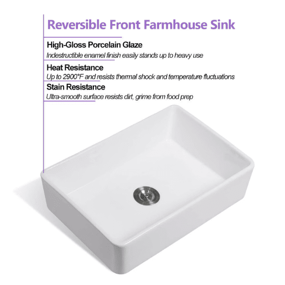 Product Name: 33" L X 20" W Single Basin Ceramic Farmhouse Kitchen Sink with Basket Filter