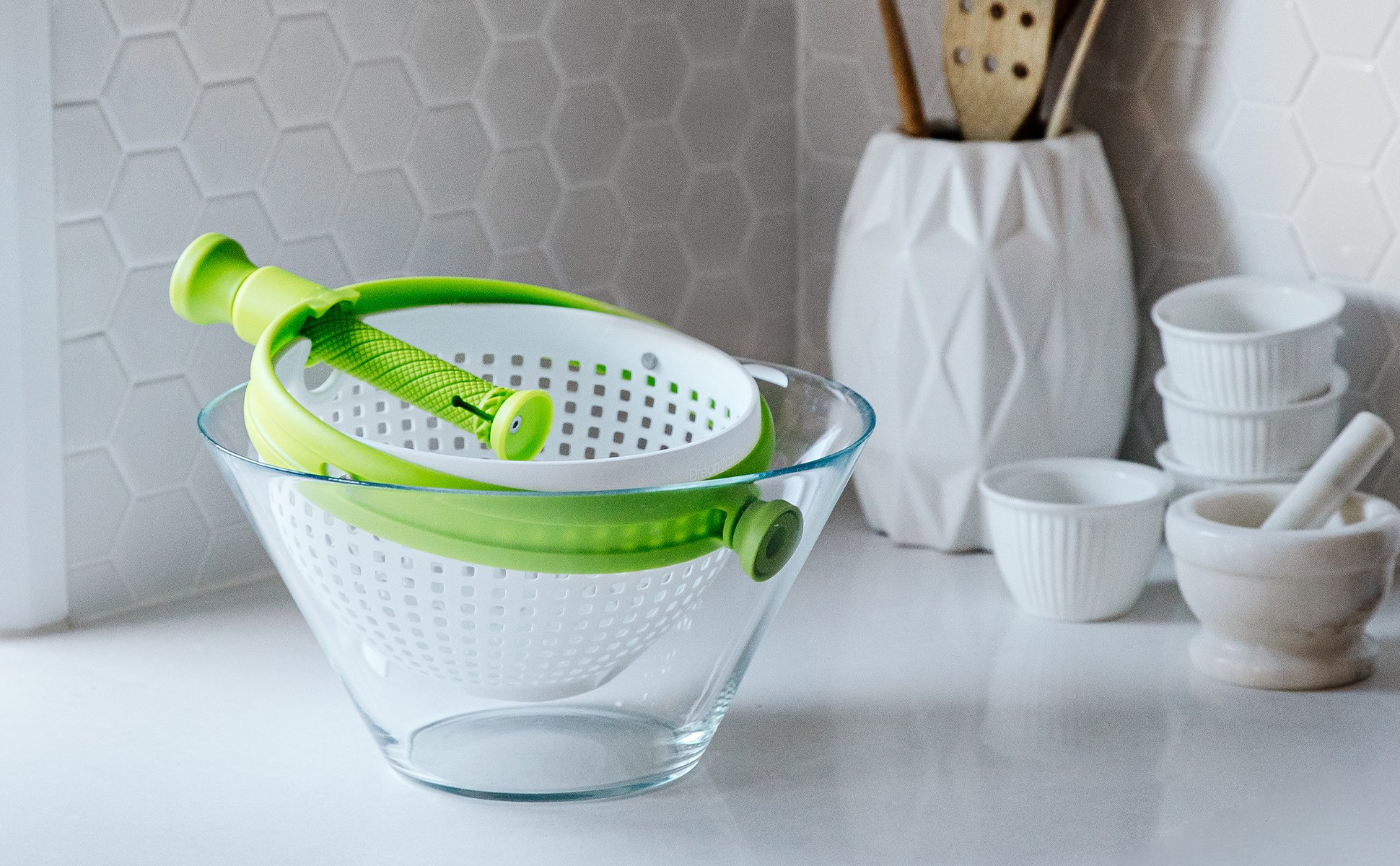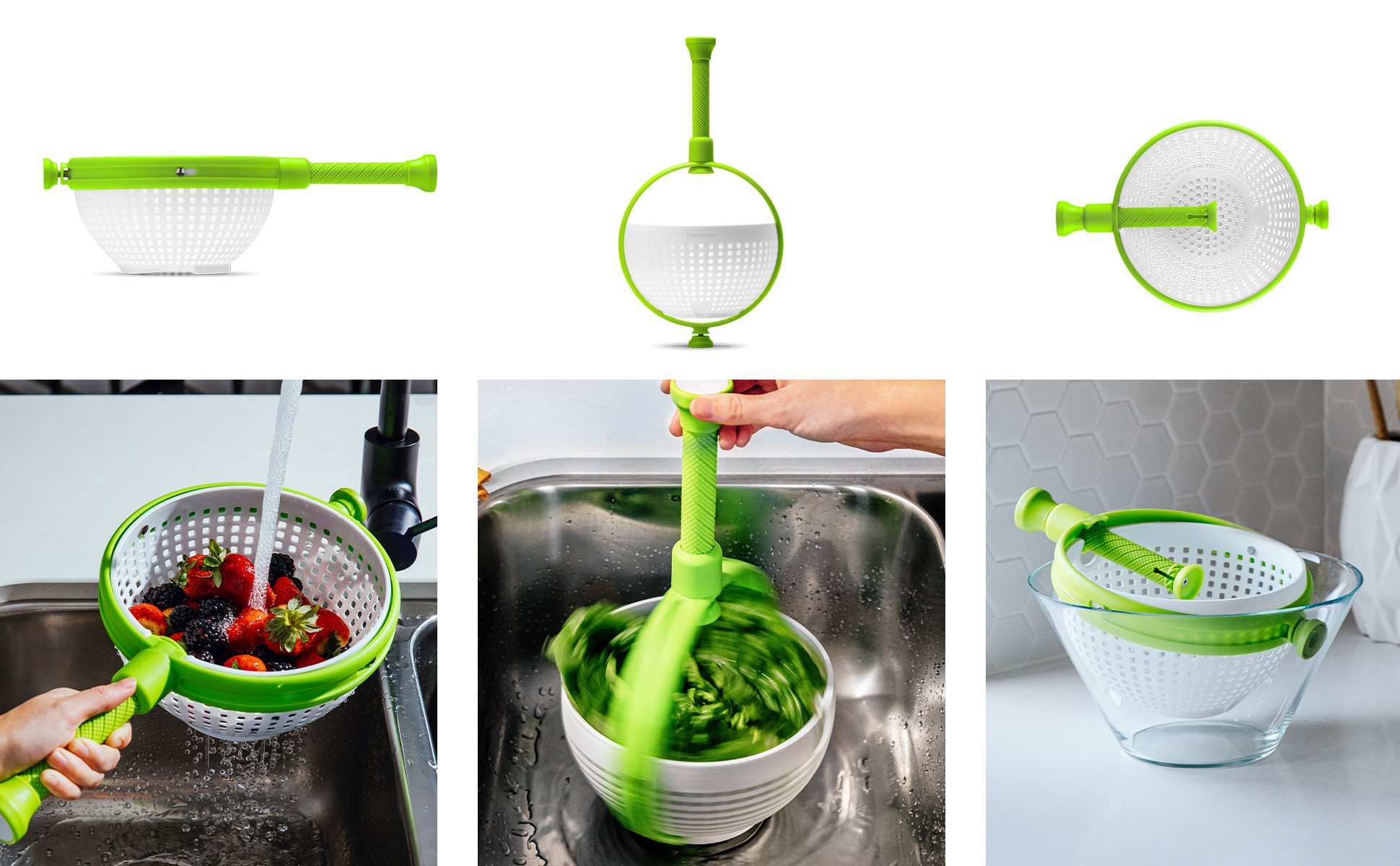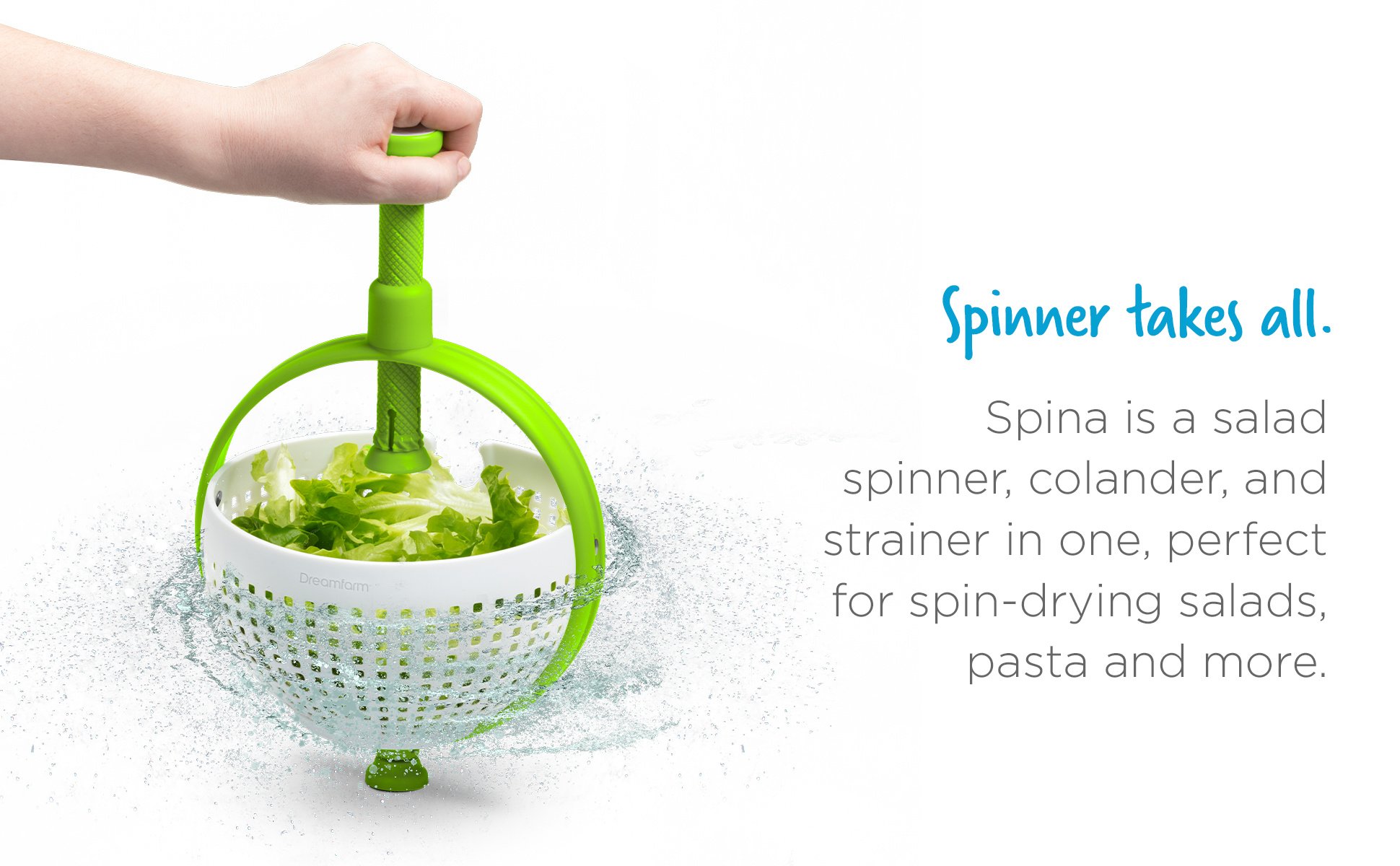 Home > Spina | Easy-To-Use Salad Spinner | Non-Scratch, Nylon Spinning Colander | Lettuce Spinner | Colander with Collapsible Handle | Green